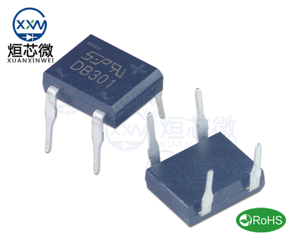 DB301整流橋,DB301整流橋參數,DB301規格書PDFDB301整流橋3A 50V,DB301封裝為DB,DIP-4,DB301整流橋參數,DB301芯片尺寸插件規格書DB301整流